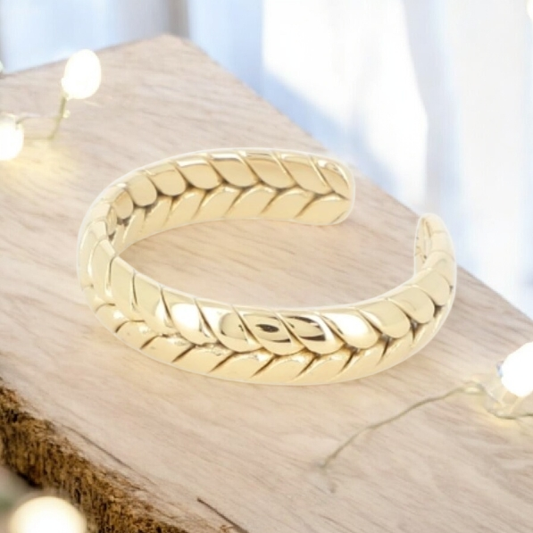 Bague en acier inoxydable composée d’un anneau effet maille en épi.