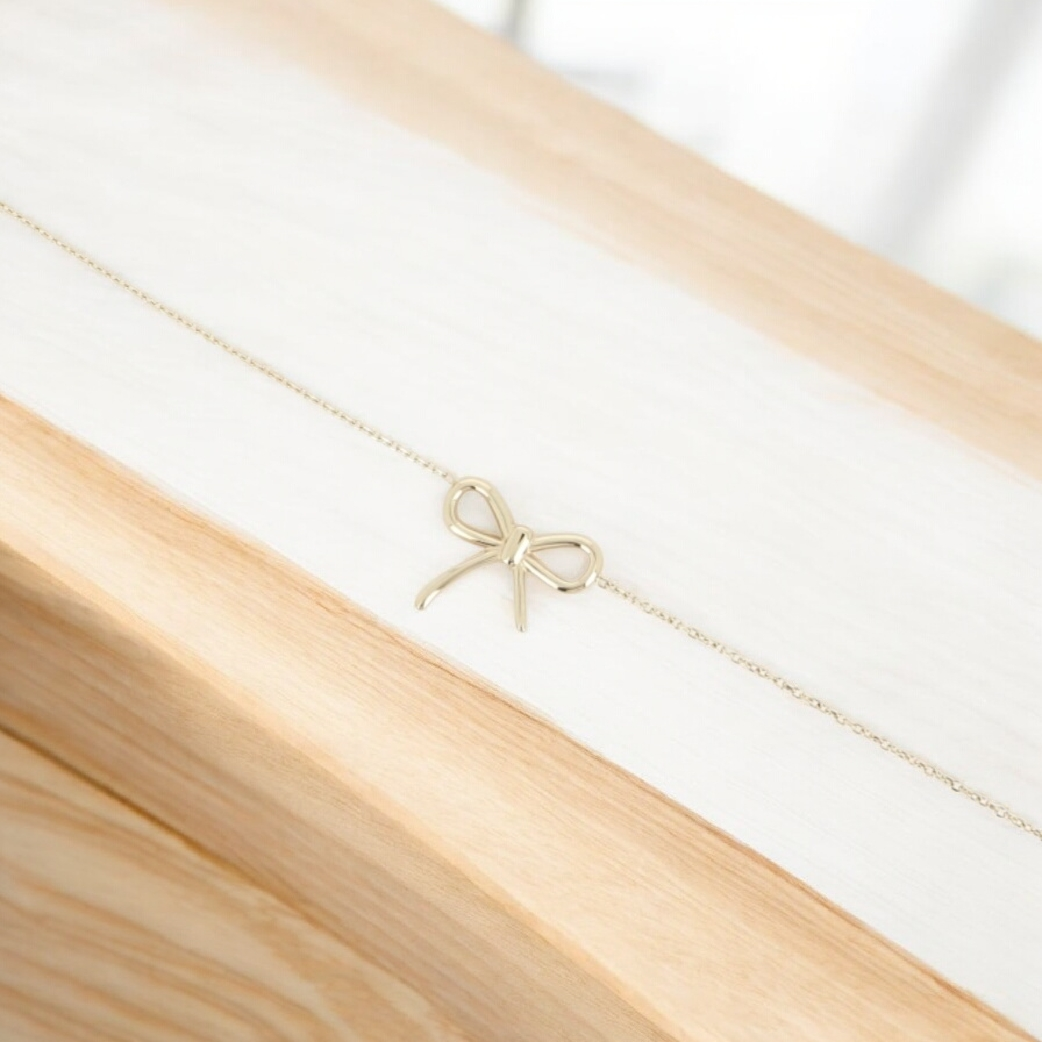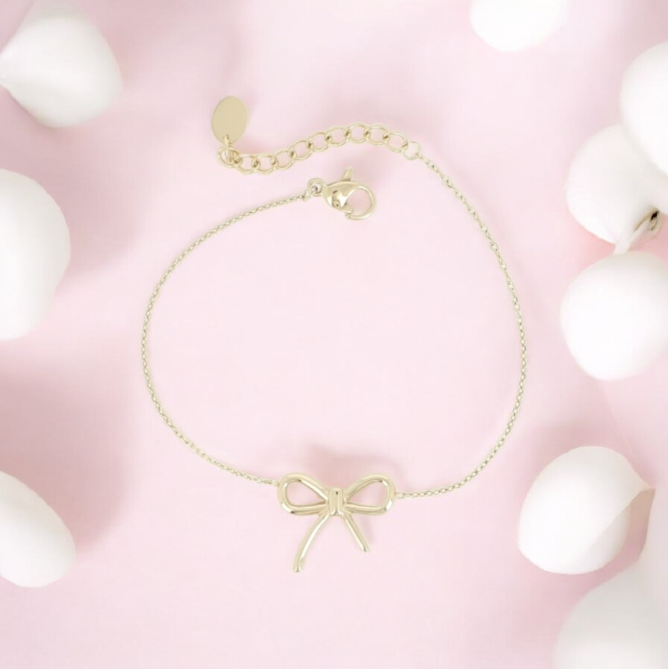 Conçu avec une chaîne fine ajustable, ce bracelet s’adapte parfaitement à tous les poignets grâce à son fermoir sécurisé et sa chaînette d’extension. Le petit nœud central apporte une touche romantique et minimaliste, très tendance.