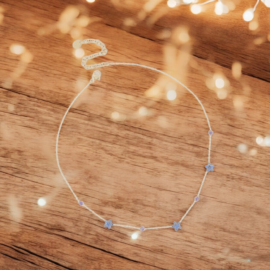 Collier 3 fleurs bleues et oxydes de zirconium