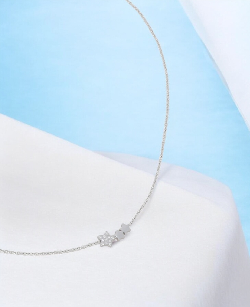 Collier en acier inoxydable composé de 3 petites étoiles serties de zirconiums.