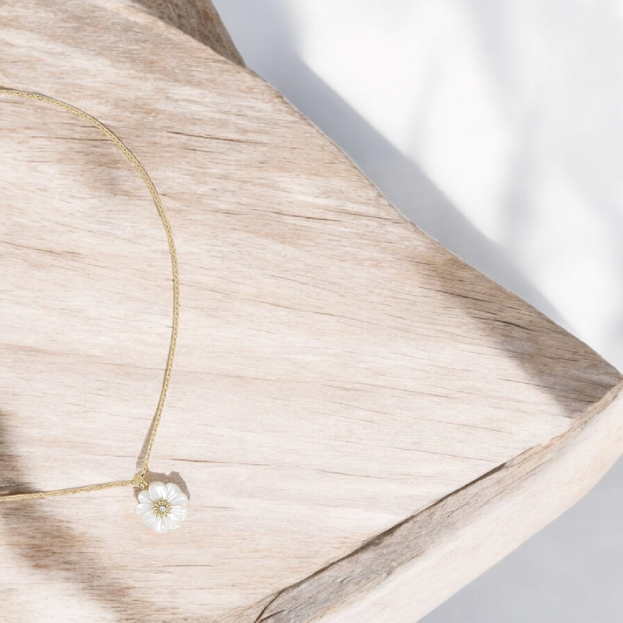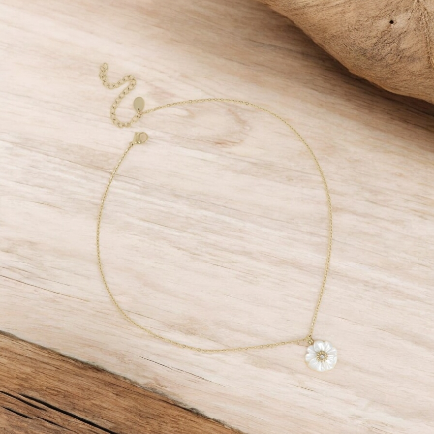 Collier sur chaîne en acier inoxydable composé d’une fleur en pierre naturelle sertie d’un oxyde de zirconium.