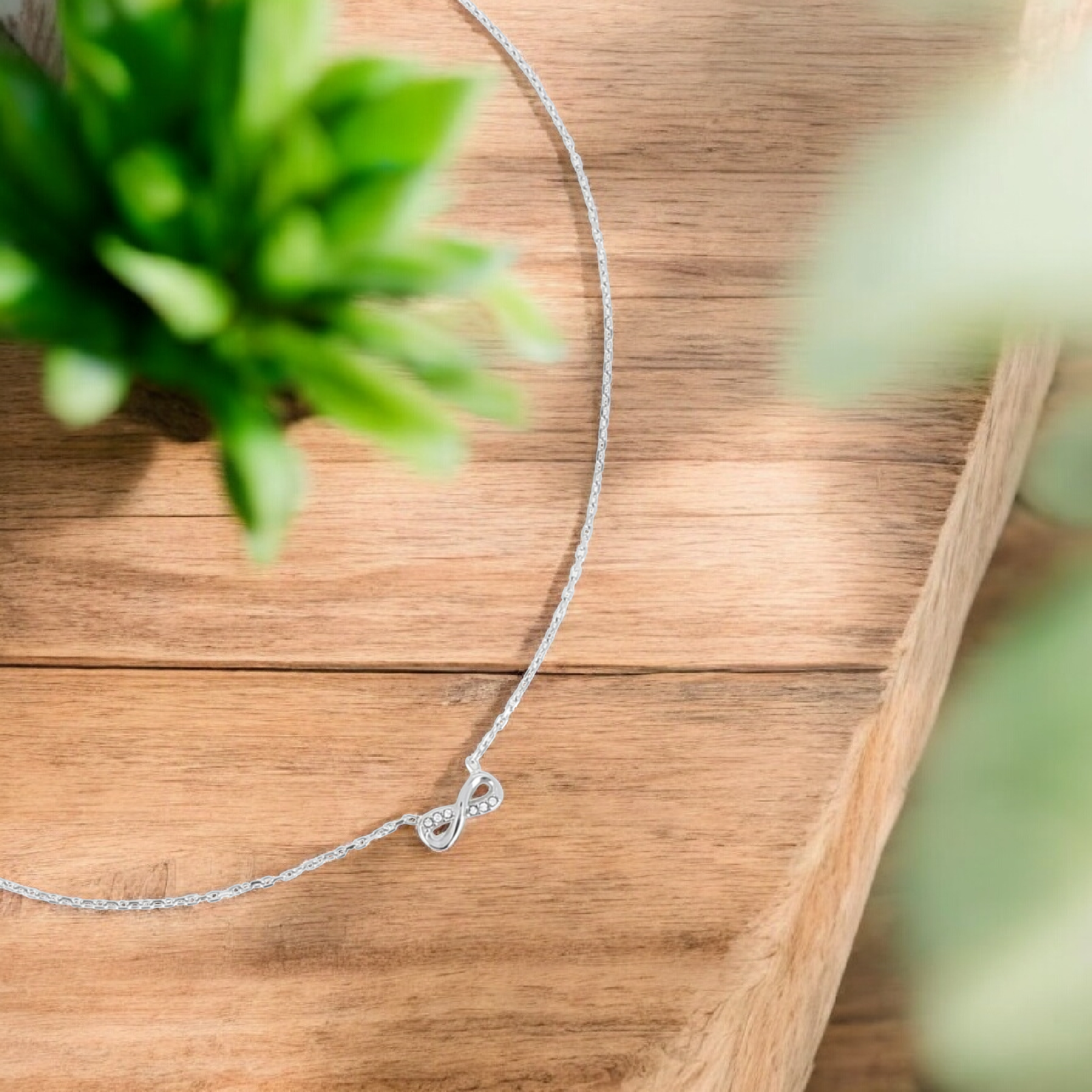 Le symbole infini finement travaillé, subtilement orné de petits détails brillants, apporte une touche de lumière tout en restant discret. Sa chaîne fine argentée épouse élégamment le cou et offre un confort optimal grâce à sa légèreté et à sa longueur ajustable.