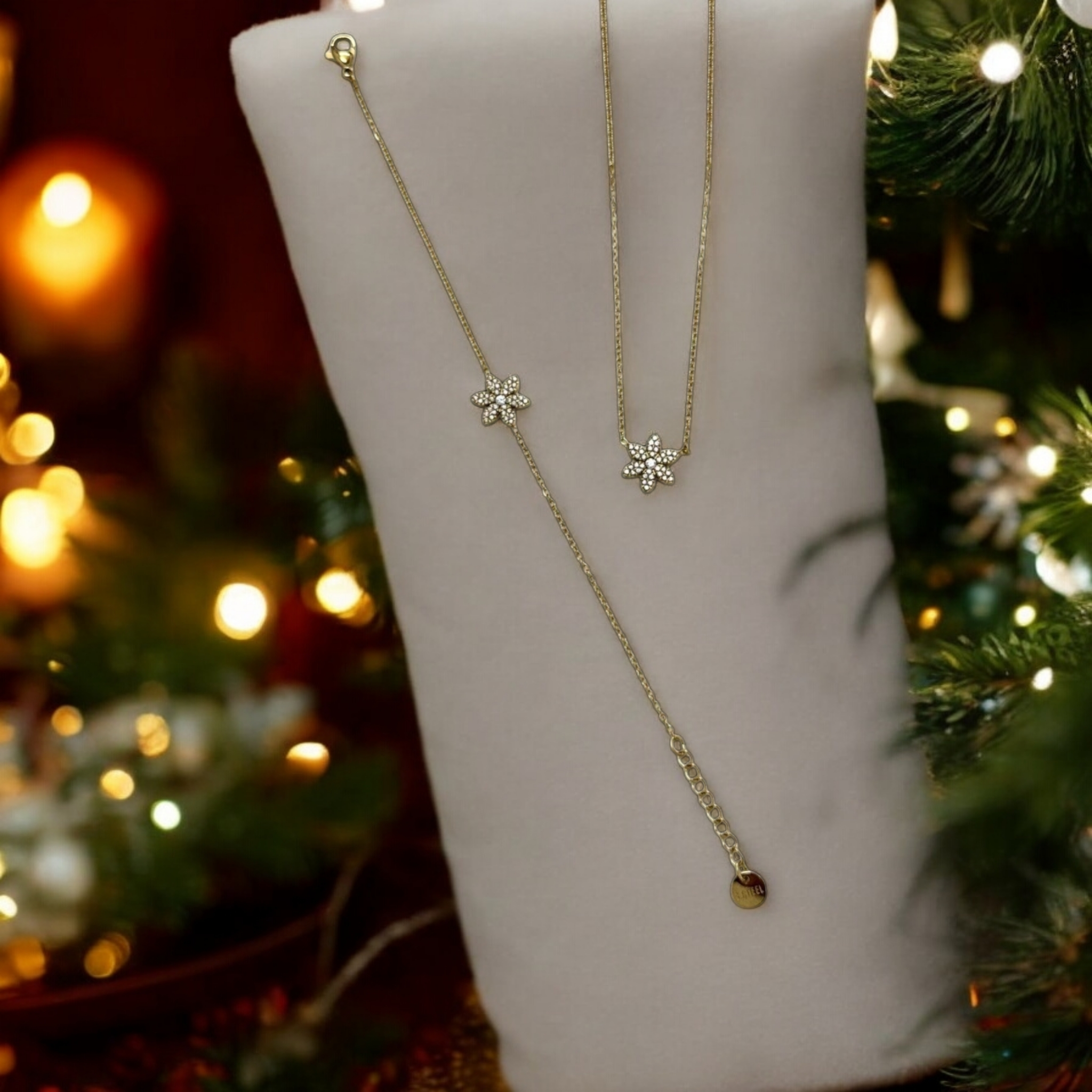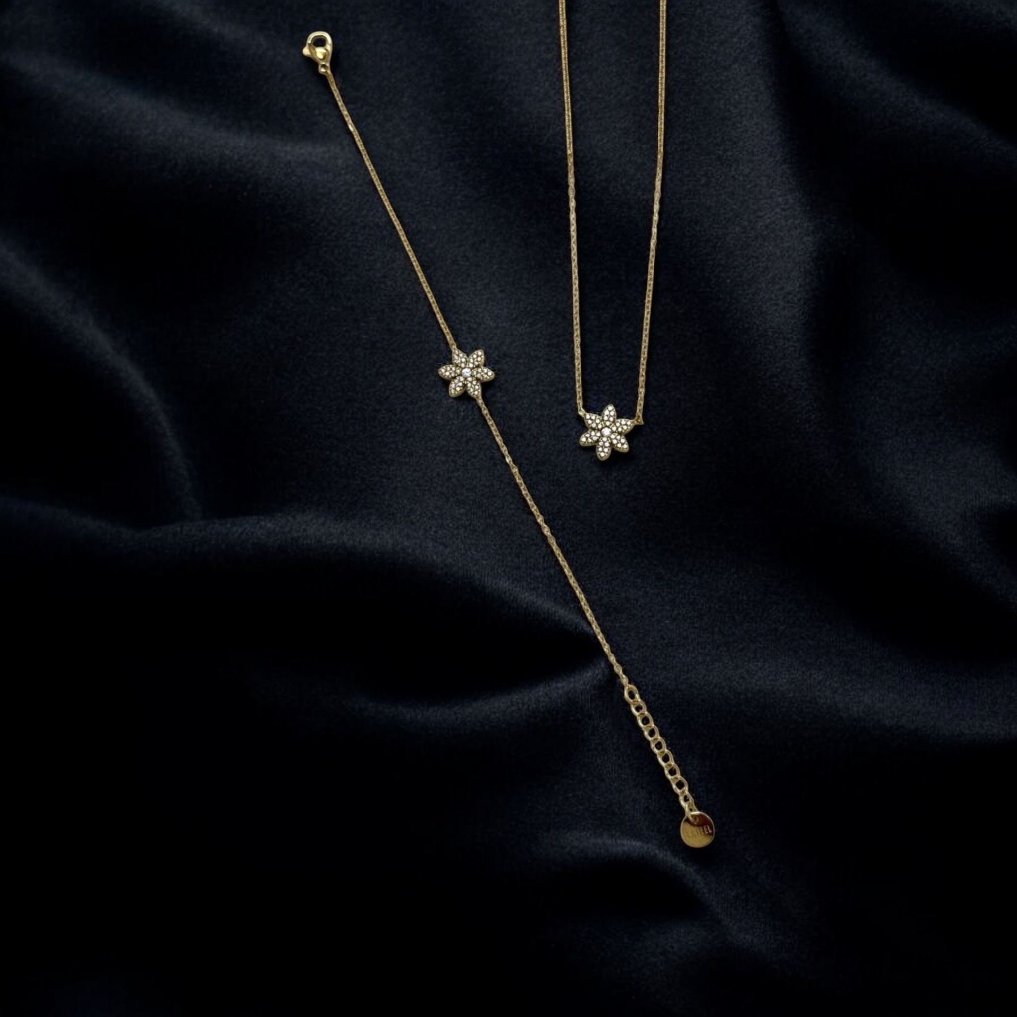 🌸 Parure Collier & Bracelet Fleur Dorée – Élégance lumineuse