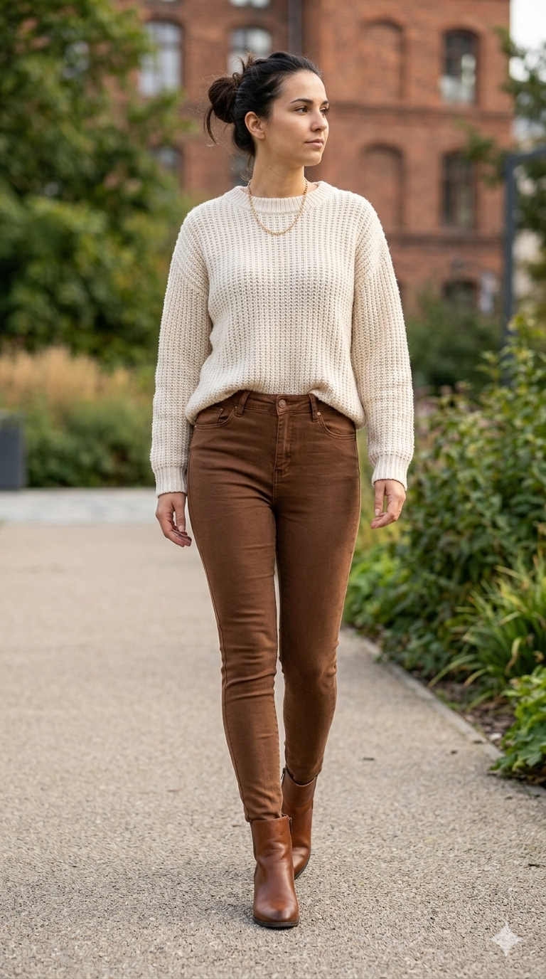 Couleur : Camel / Marron chaud, une alternative élégante au denim classique.