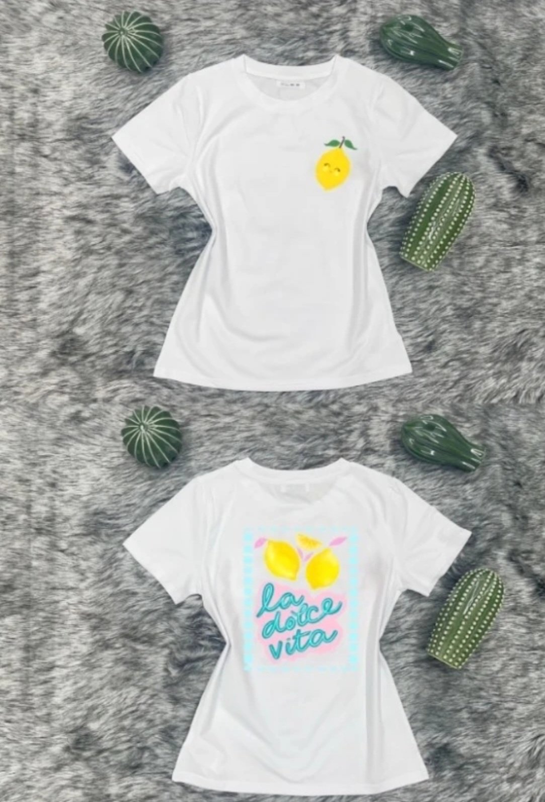 Apportez une touche ensoleillée à votre garde-robe avec ce T-shirt blanc « La Dolce Vita ». Son motif citron frais et son style tendance en font la pièce parfaite pour un look estival chic et décontracté.