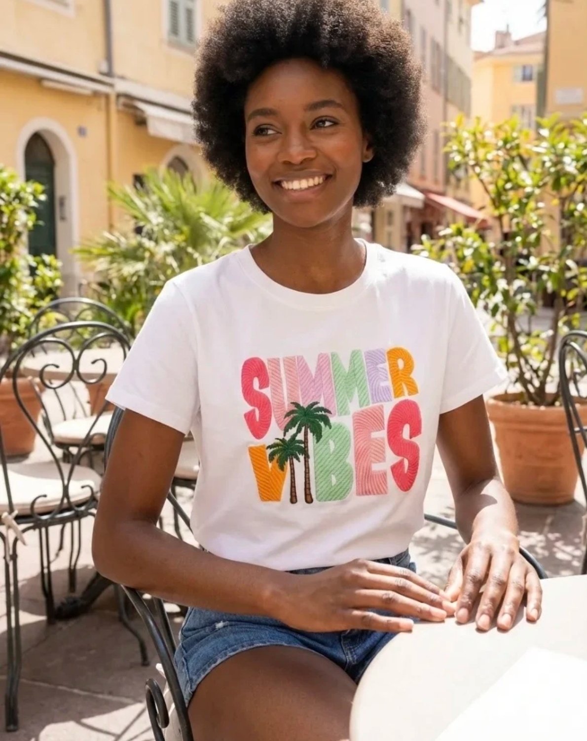 ☀️ T-Shirt « Summer Vibes » – Broderie Relief & Coton Premium