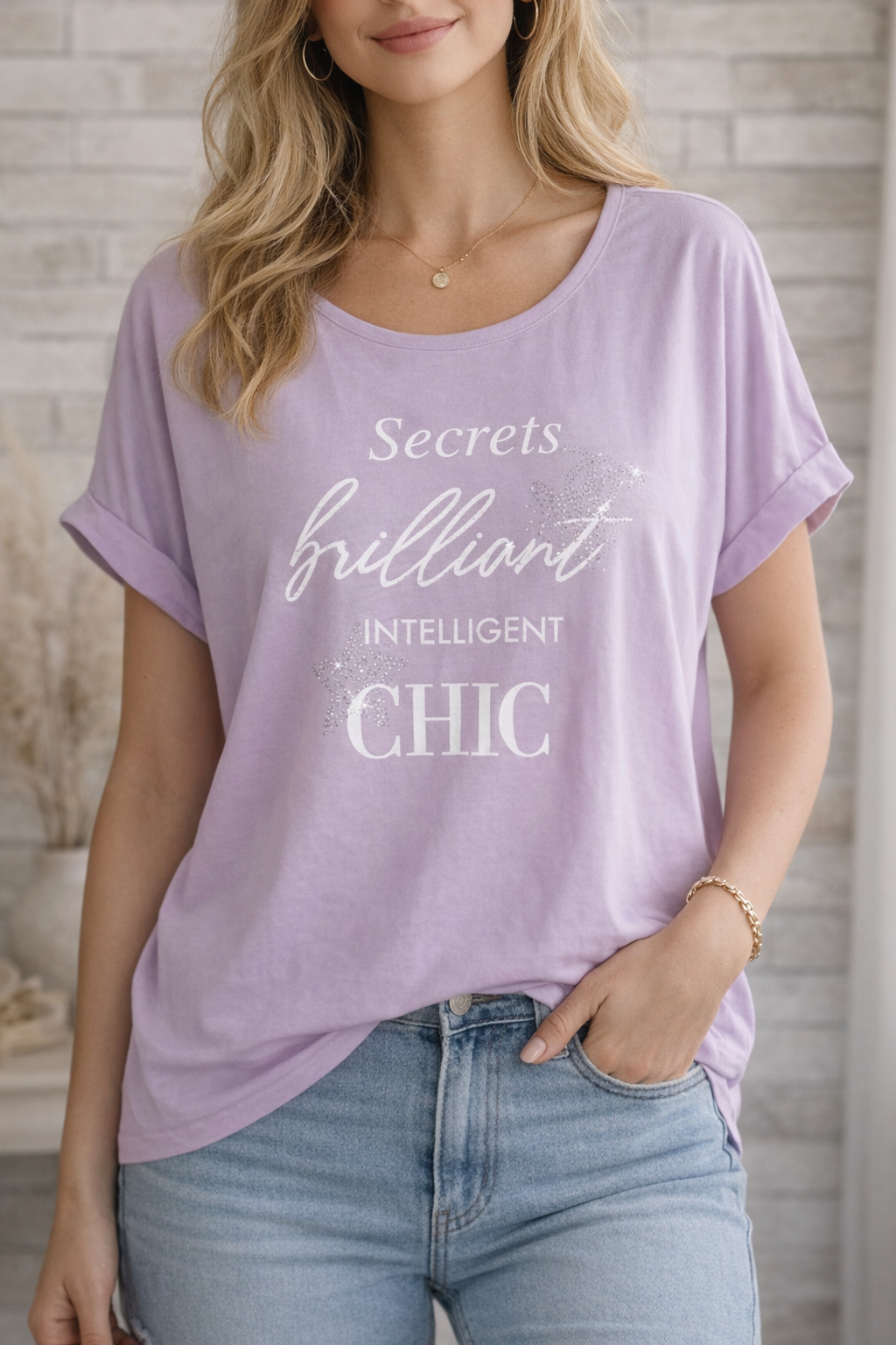 T-shirt Oversize Lilas imprimé Secrets brilliant