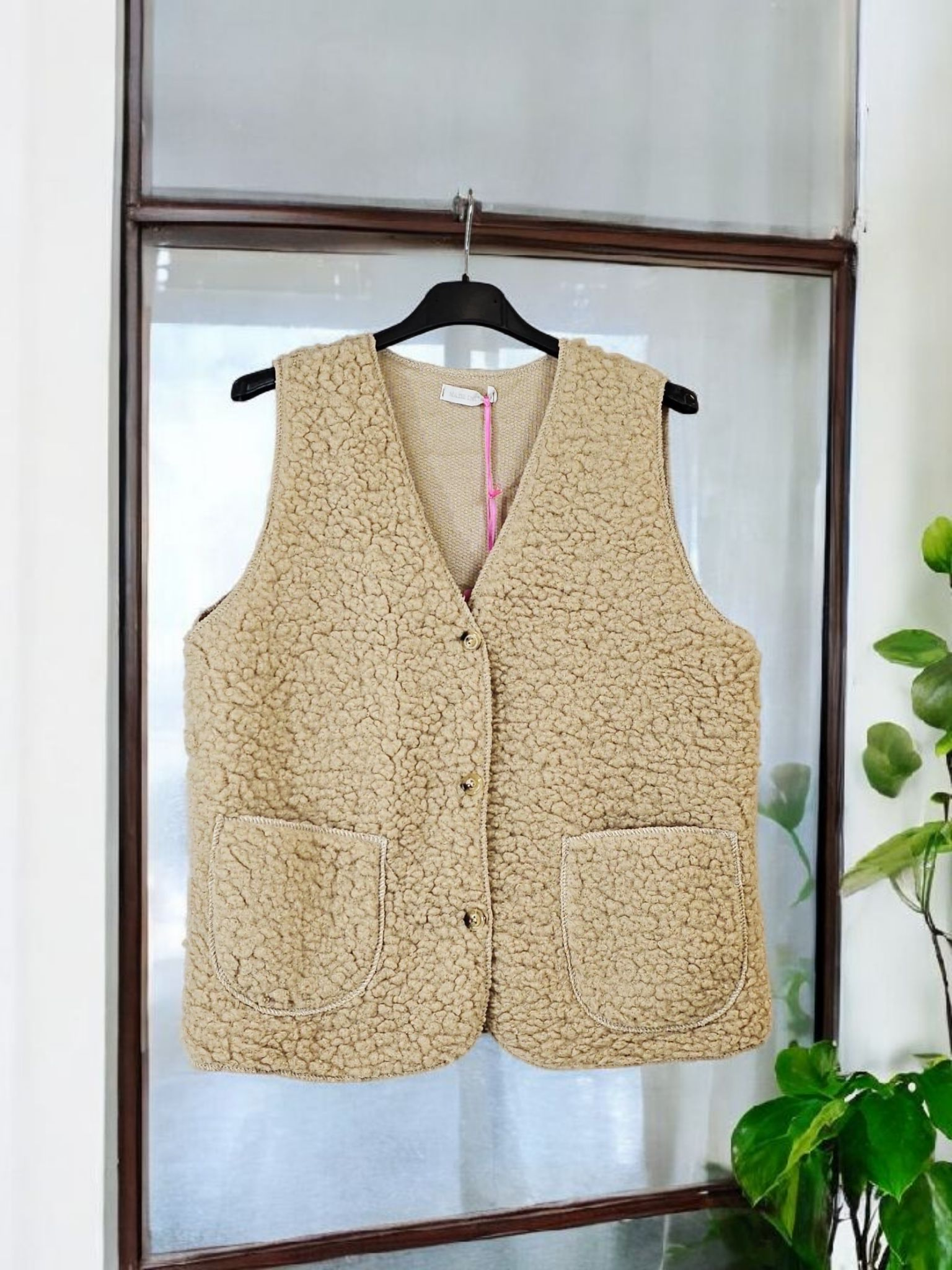 Ce gilet est la pièce parfaite pour affronter l’hiver avec style. Il réchauffe instantanément votre tenue tout en ajoutant une touche moderne et décontractée. Une valeur sûre pour celles qui aiment associer confort, douceur et élégance naturelle.