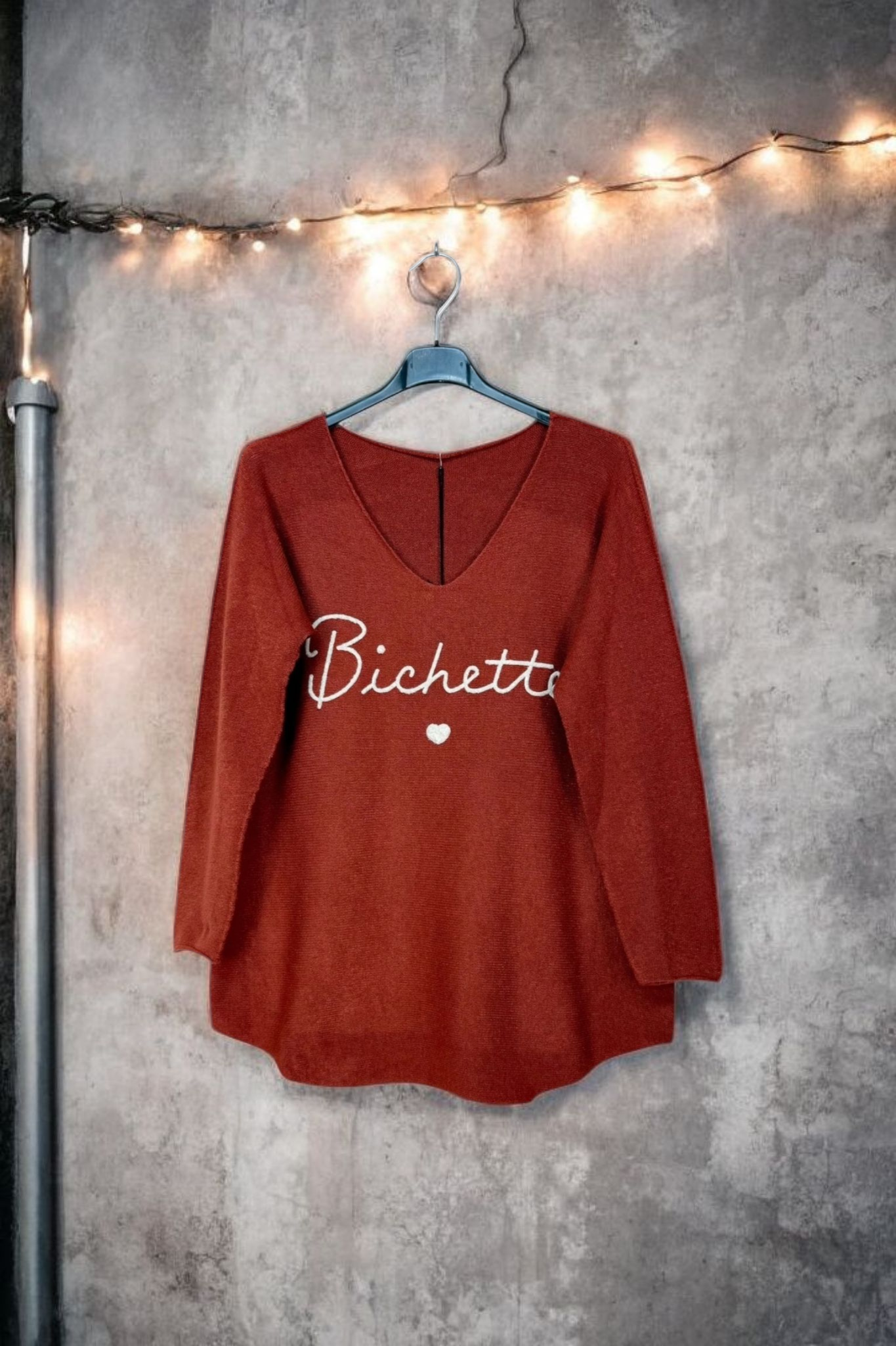 Avec son message “Bichette” et son petit cœur délicat, ce pull allie confort, féminité et une pointe de fantaisie.