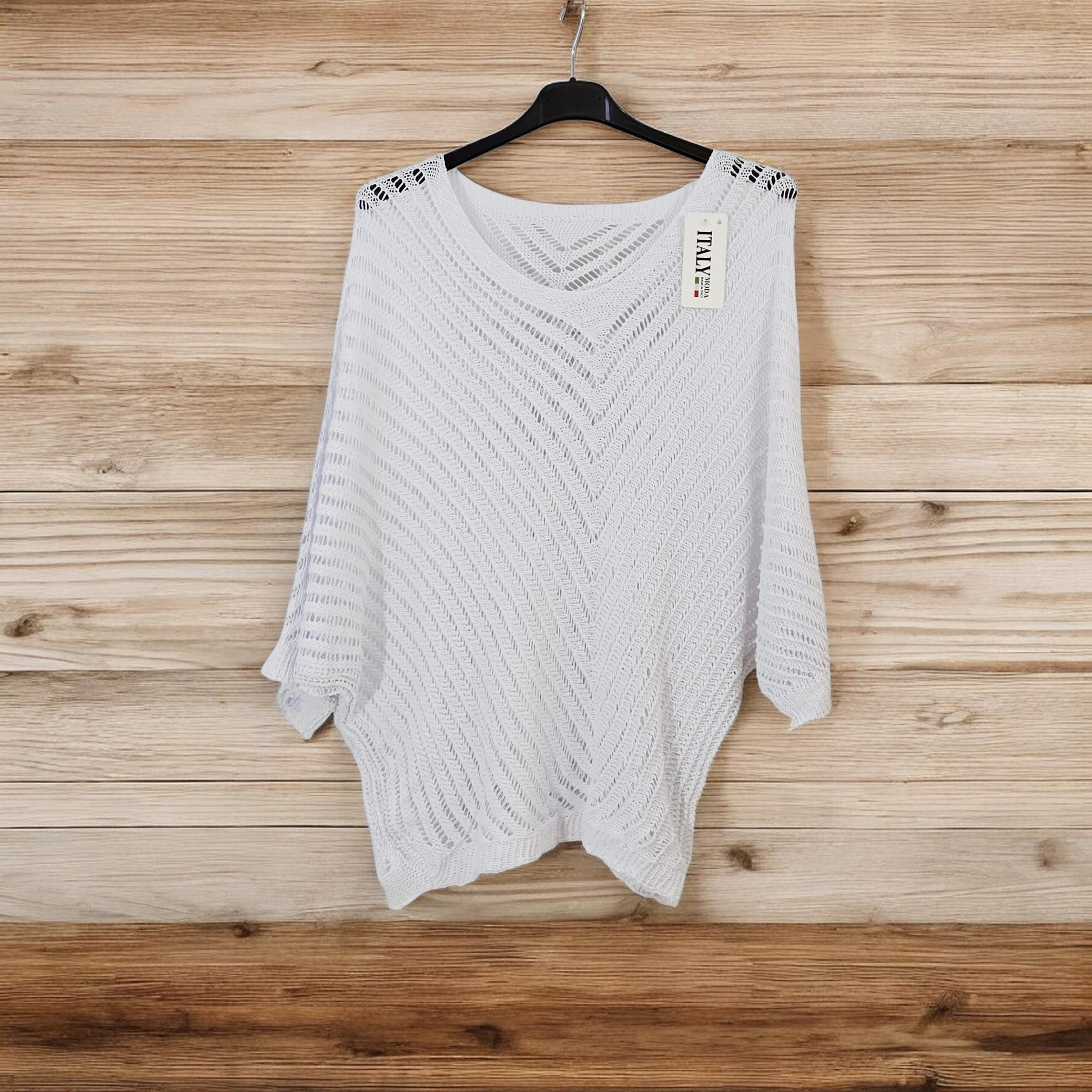 Pull Blanc Maille Ajourée – Manches Chauve-Souris Mi-Longues | Élégance Bohème