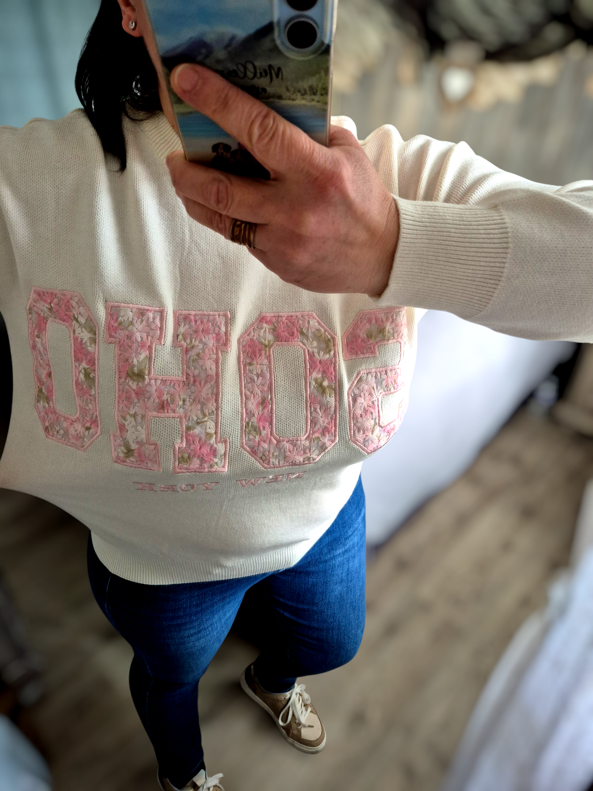 Pull Femme inscription SOHO Lettres Florales Roses