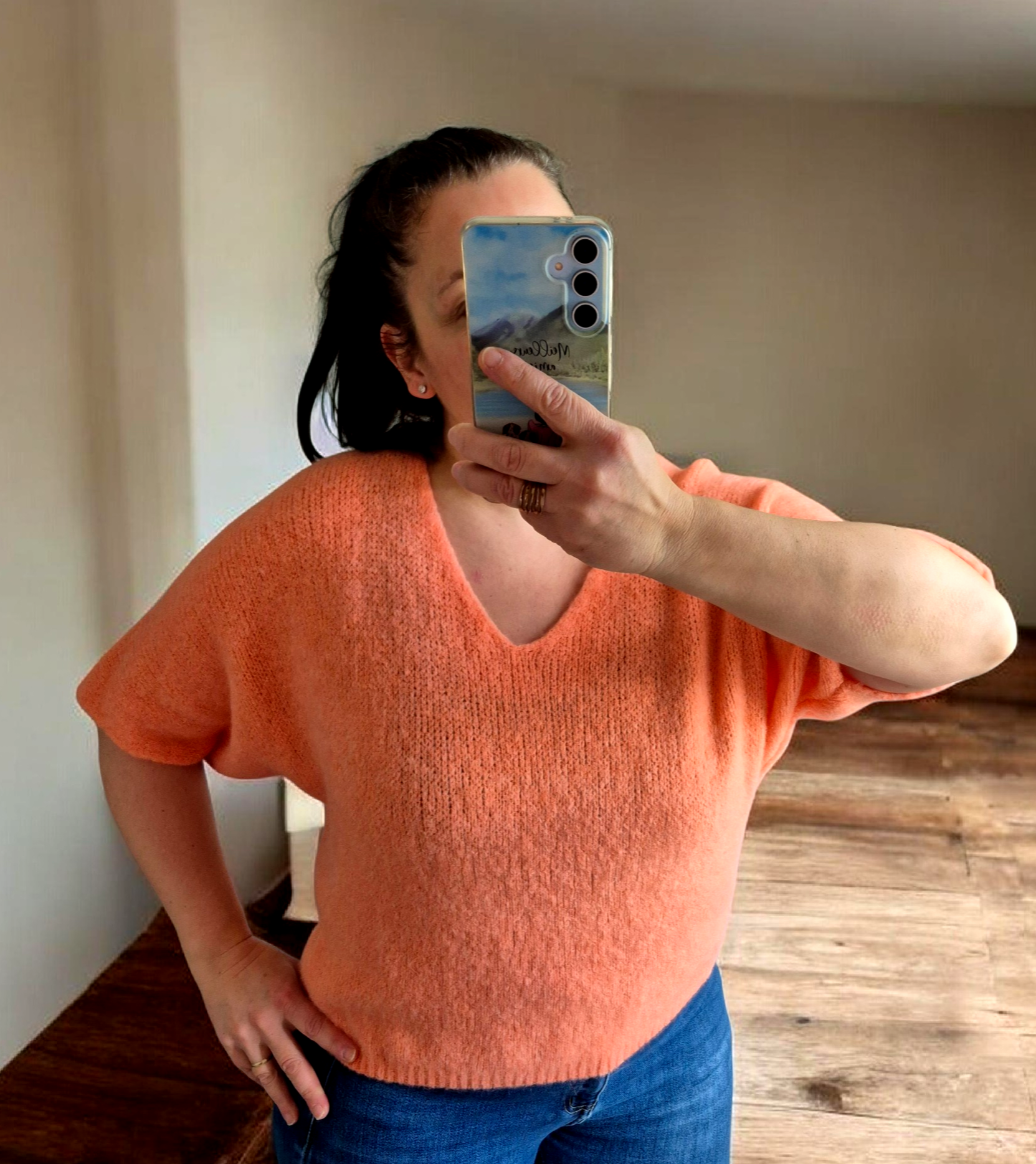 🌷 Pull Femme Léger Abricot – Col V – Maille Douce & Confort