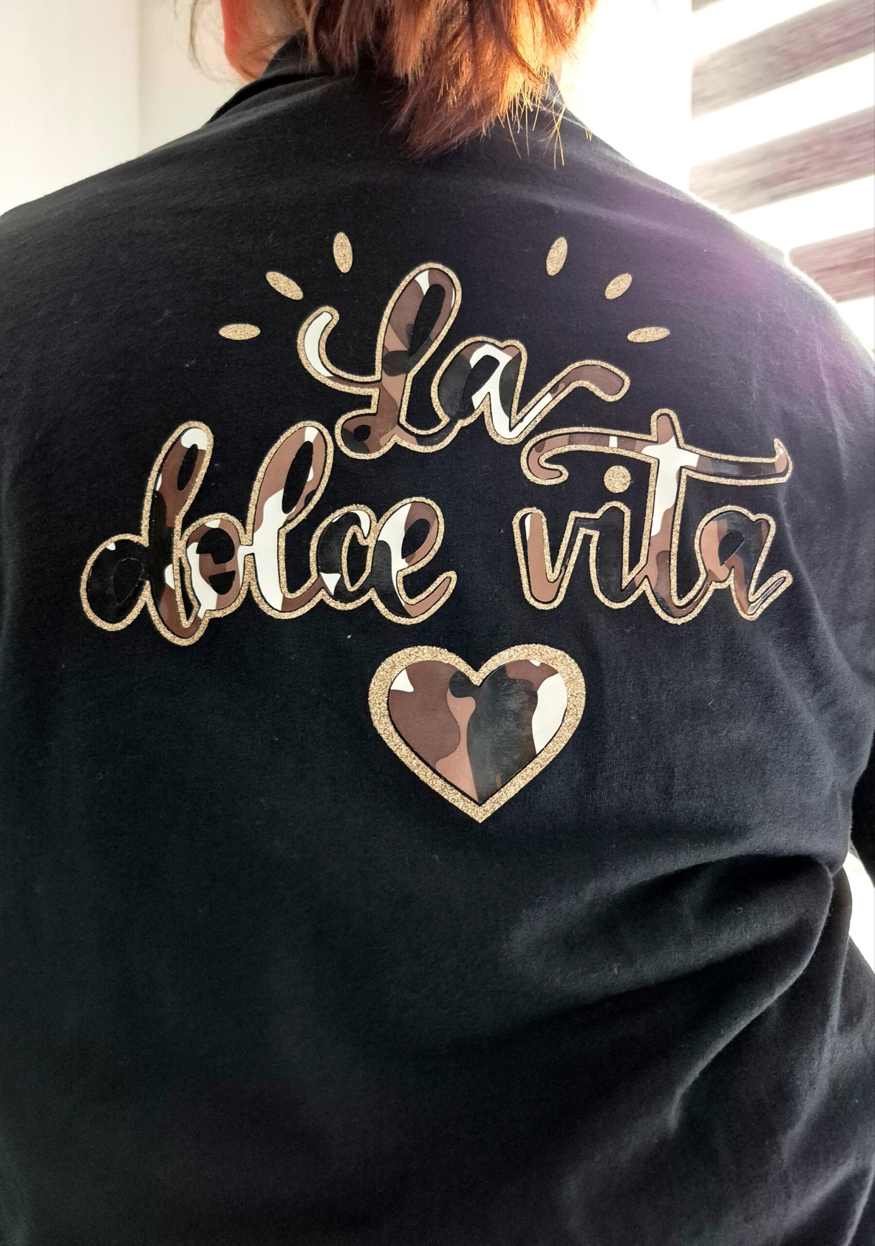 Optez pour un style tendance et confortable avec cette veste femme à boutons en 100% coton. Sa coupe décontractée, ses poches pratiques et son inscription élégante “La Dolce Vita” dans le dos en font une pièce originale et indispensable à votre garde-robe.